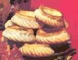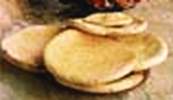 Basic dough recipe is the same as Obi-non above. Pick and clean the best dried chickpeas and crush. Boil anise seed in water and then add crushed chickpeas. Cool for about an hour, add yeast and mix well. Add anise water to flour and make dough. Divid into pieces, flatten into round bread, 2.5 cm (1 in) at edges and 1 cm (2/5 in) in the center. Make a pattern in the center with chekish and make decorative pattern on sides bread with a knife. Bake in tandoor oven.
